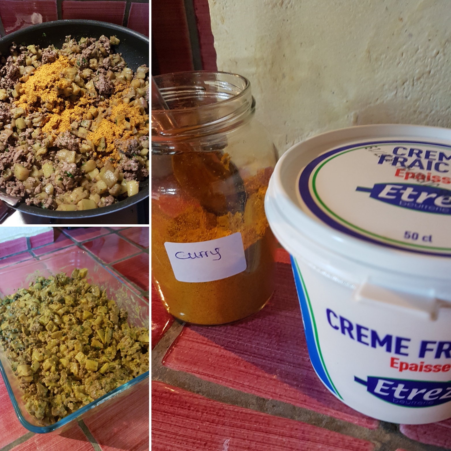 Gratin d'aubergines, boeuf haché, curry et coriandre